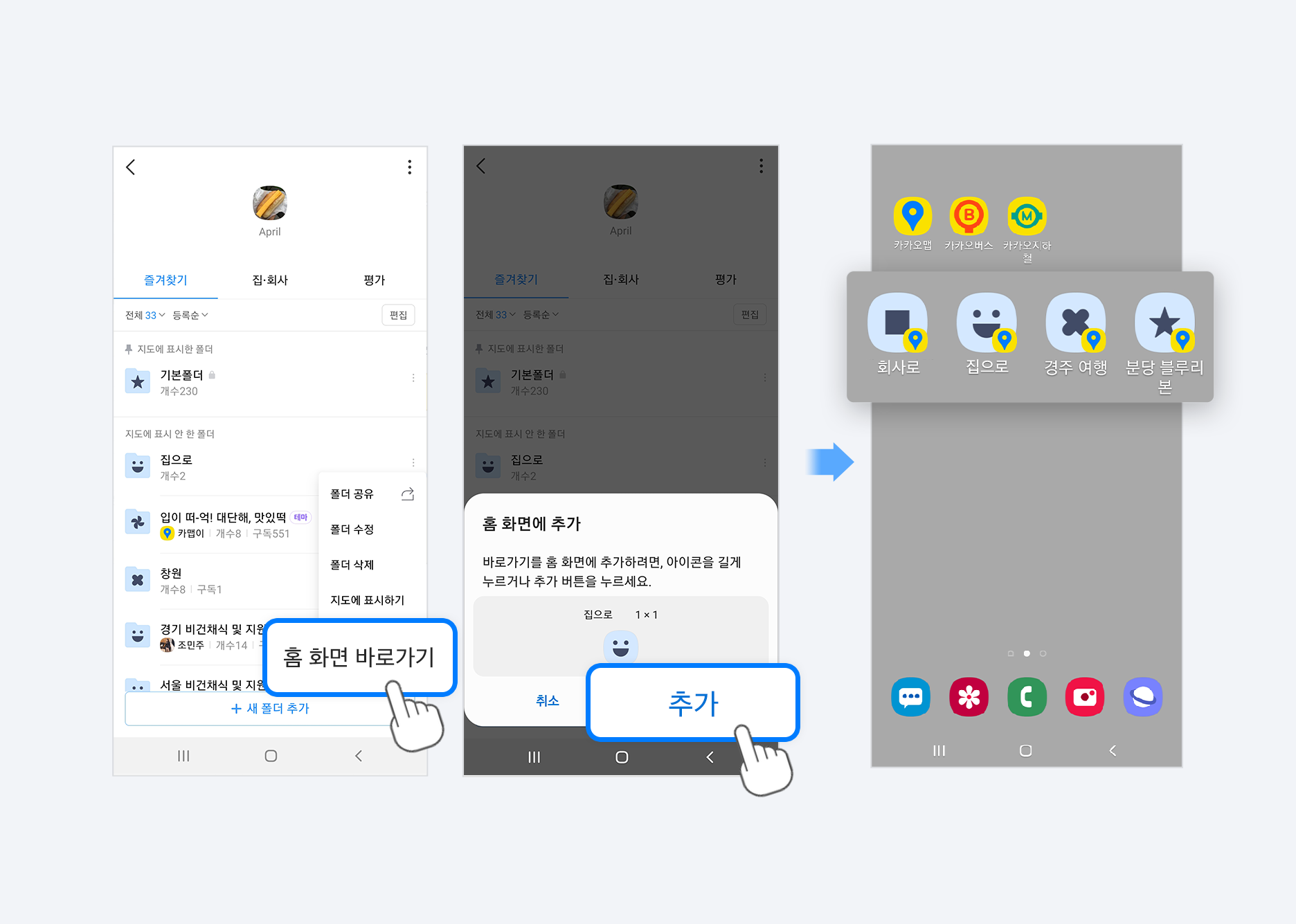 - 홈 화면에 폴더 바로가기를 만들 수 있어요!