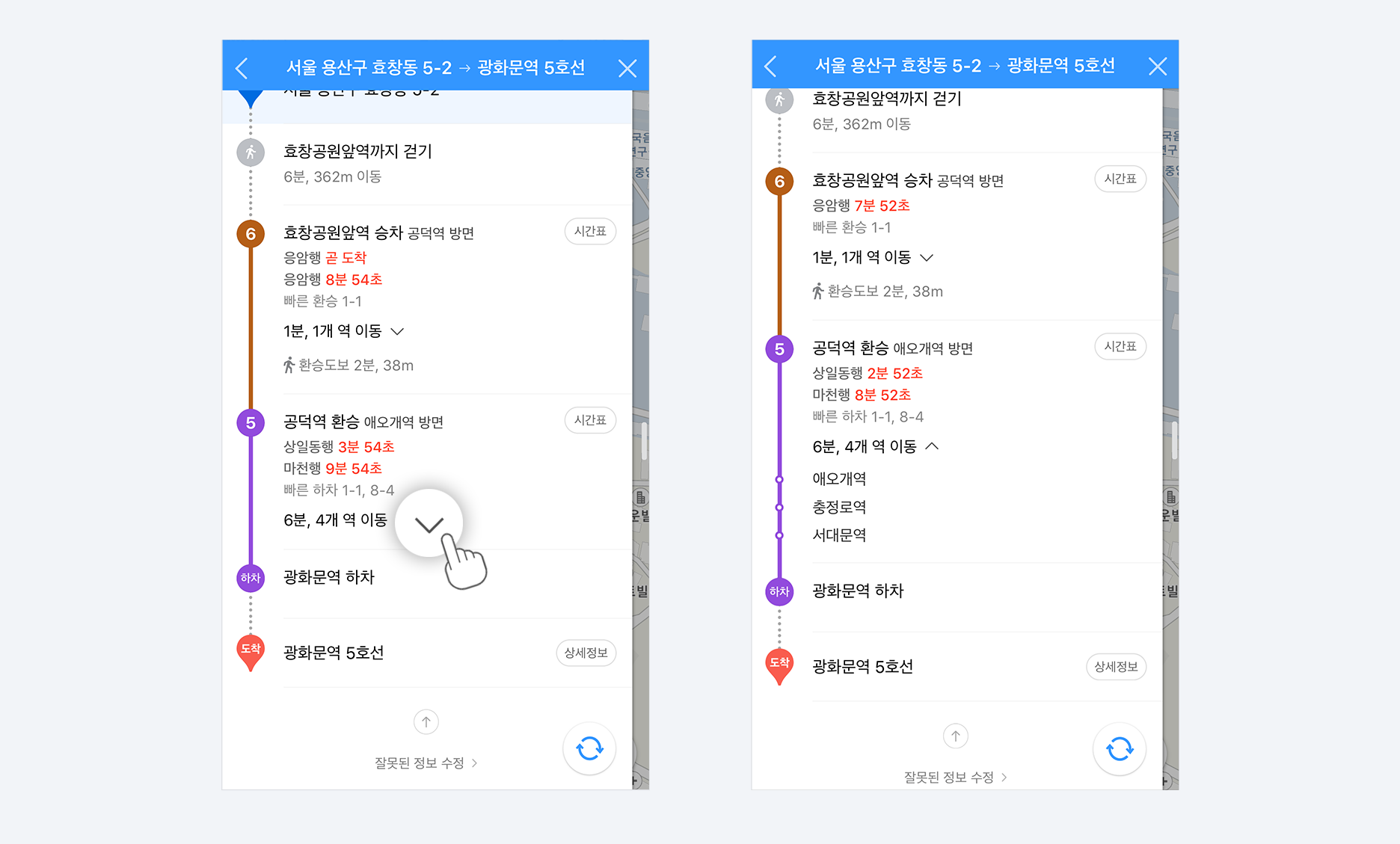 버스 소요 시간 옆에 화살표를 눌러주세요.