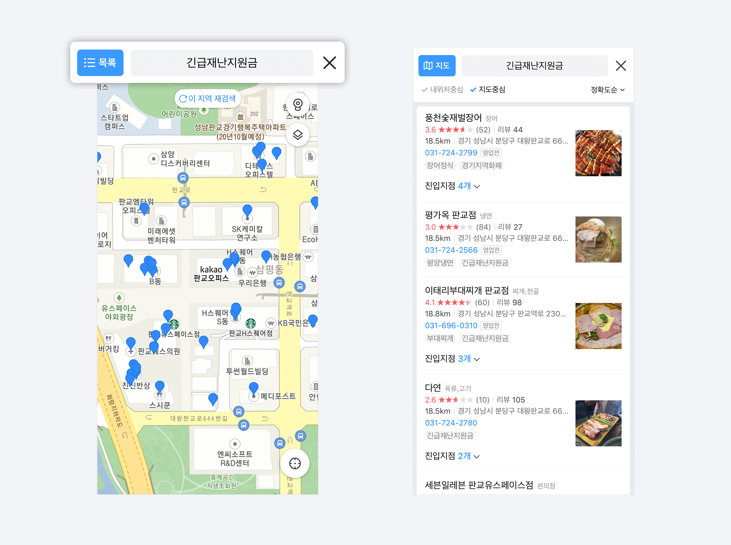 * 카카오맵에서 '긴급재난지원금'을 검색하면,