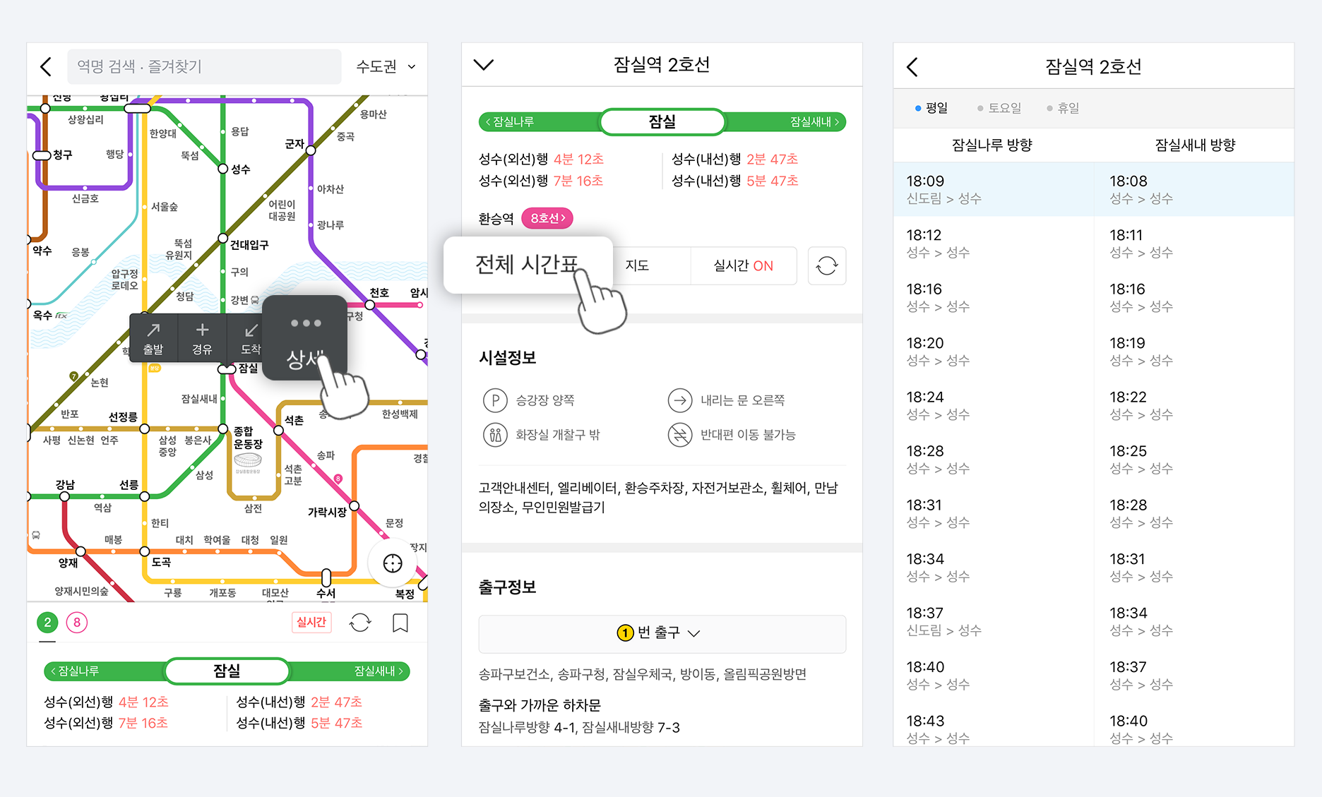역 위에 나타난 출발/도착/상세 말풍선에서 상세를 눌러주세요.