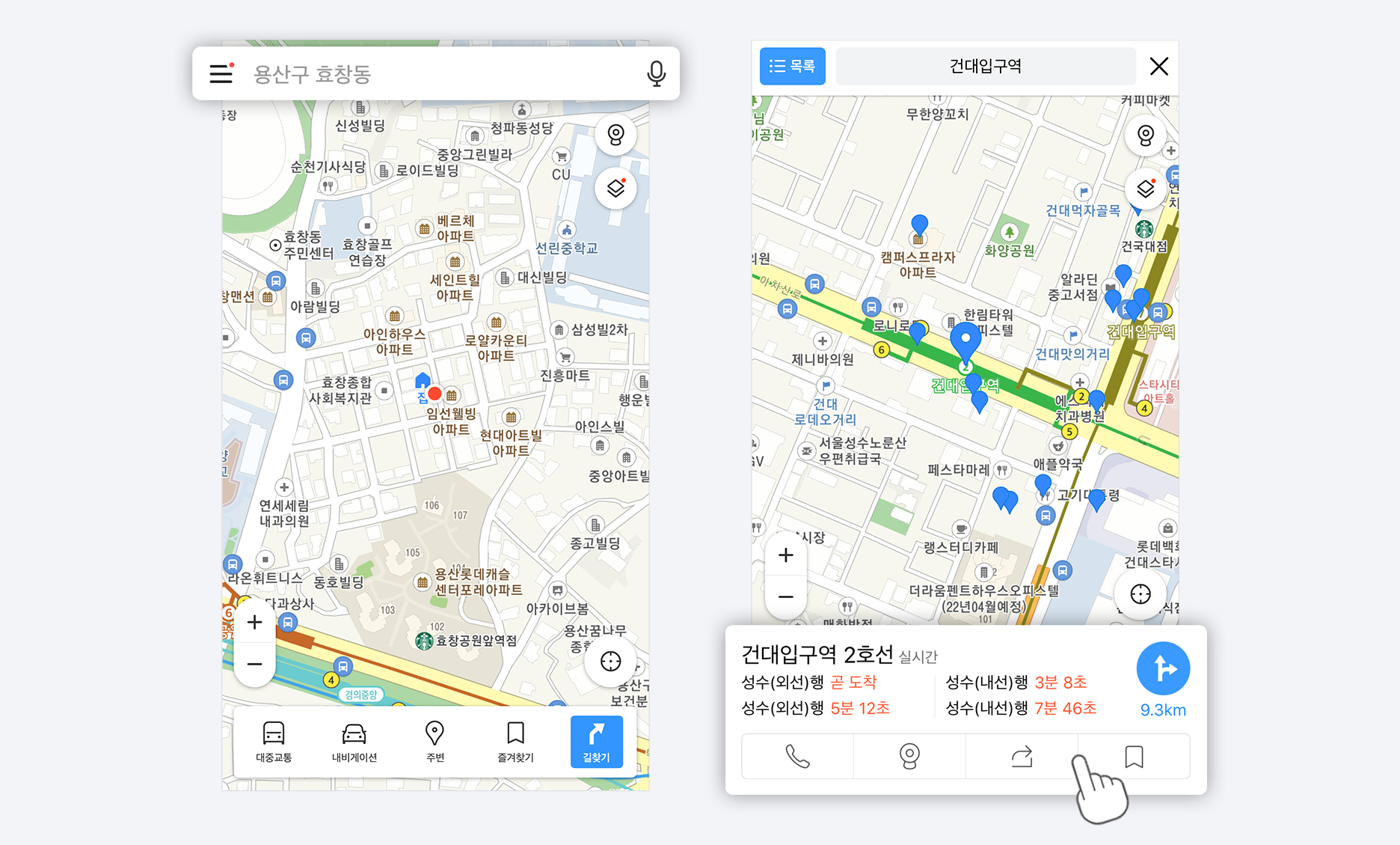 카카오맵은 건대입구역을 검색했어요.