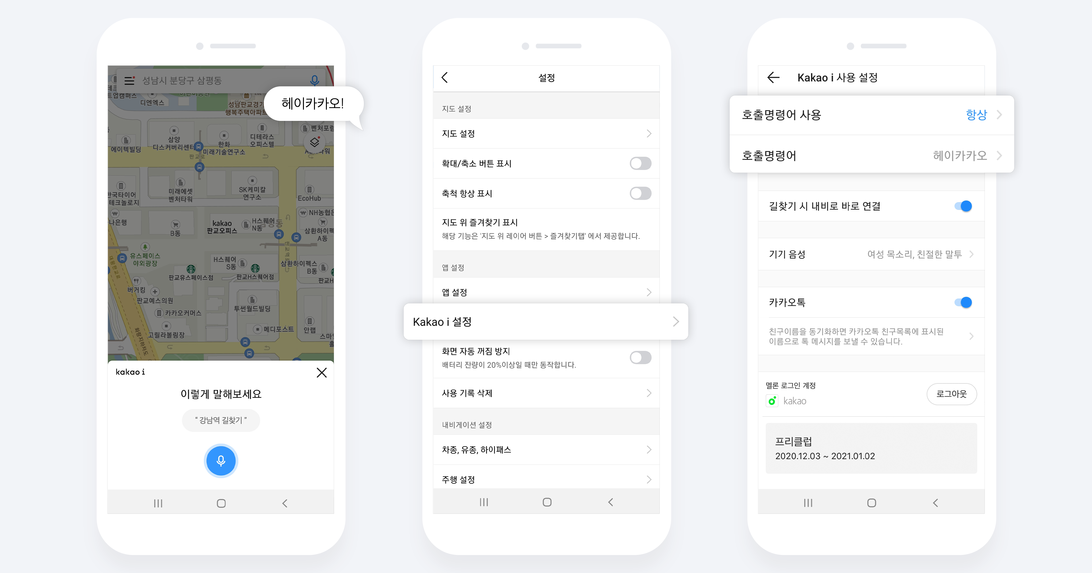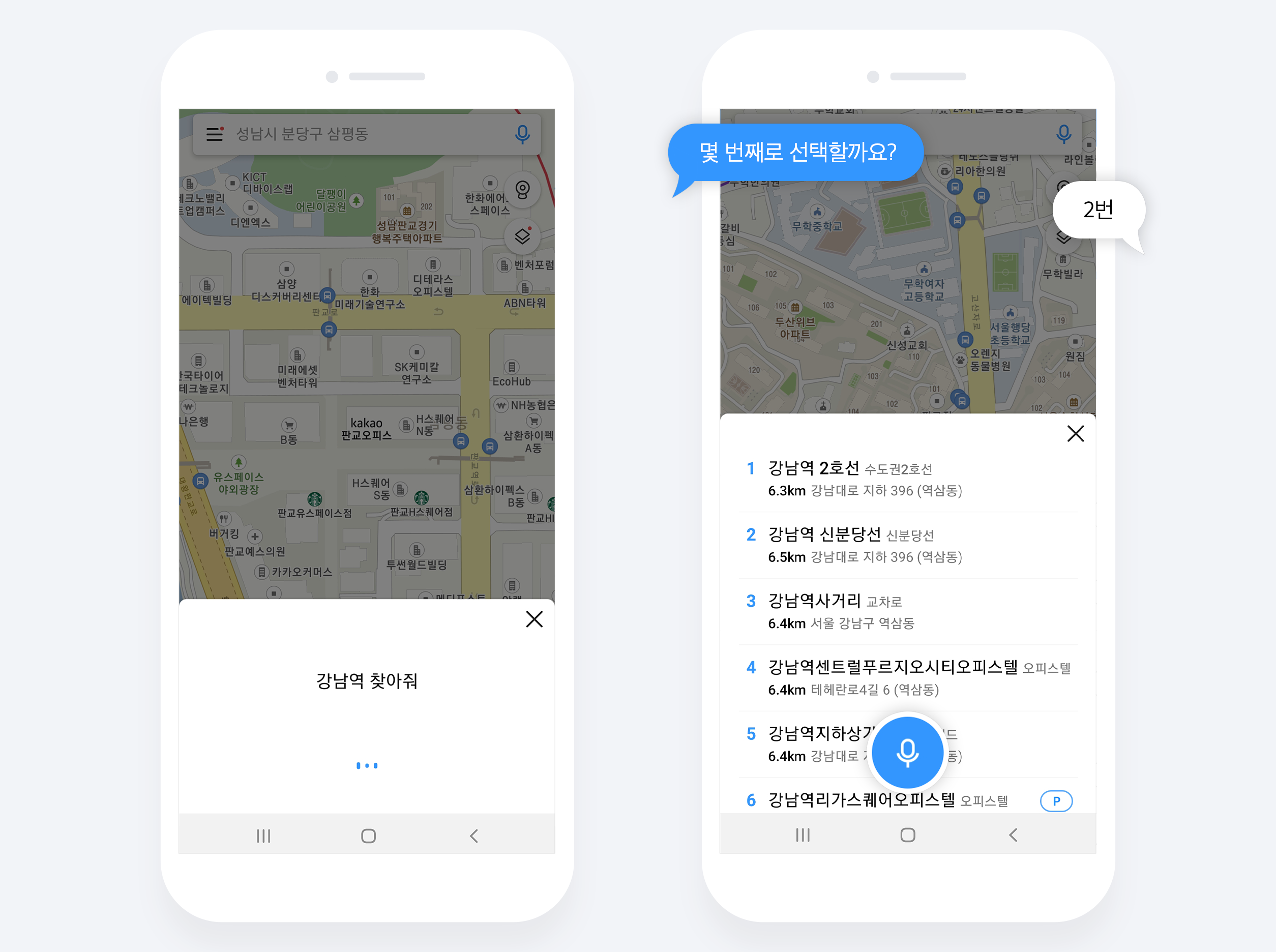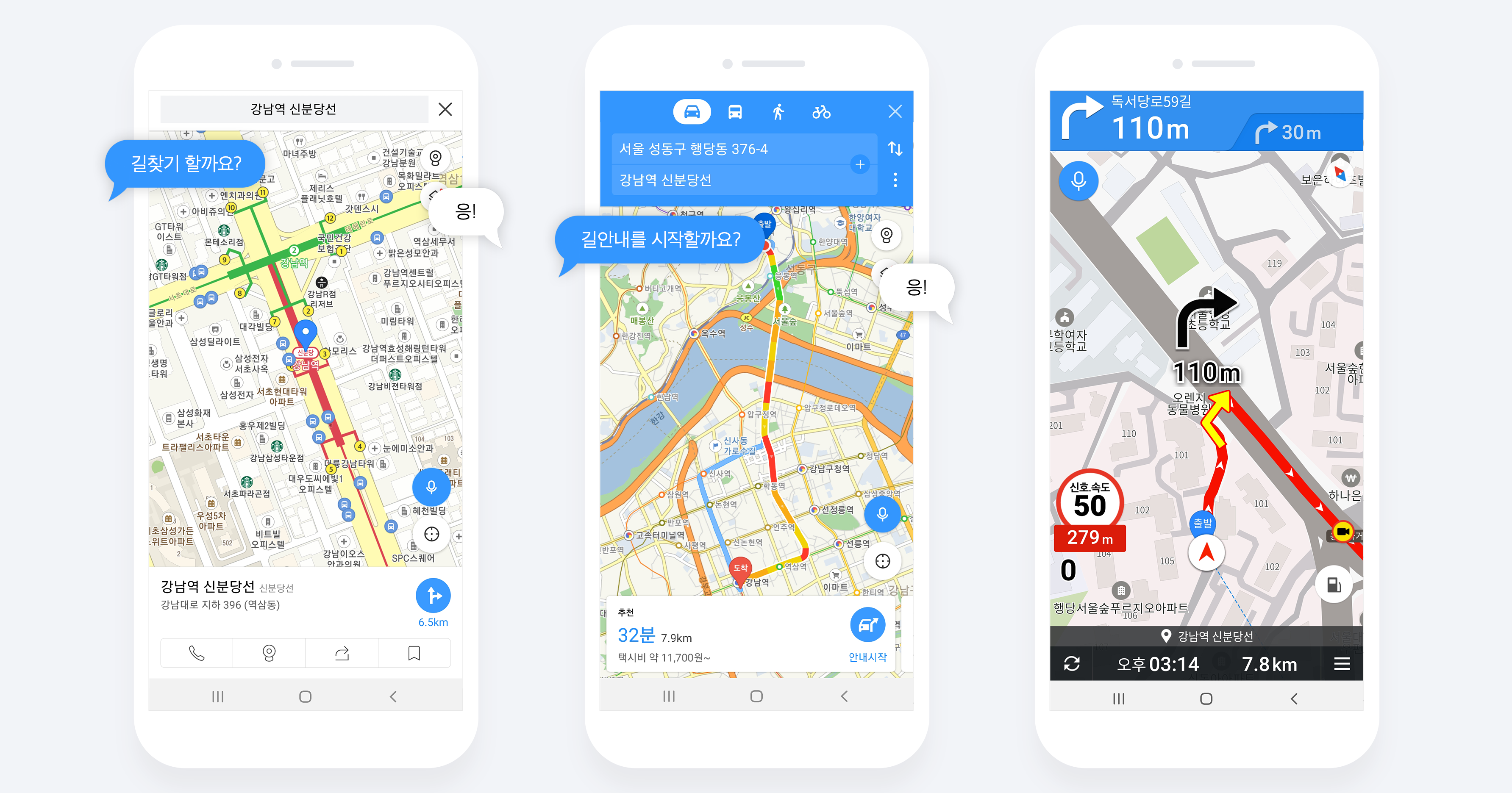 "헤이카카오, 강남역까지 길안내해줘" 라고 말해보세요.