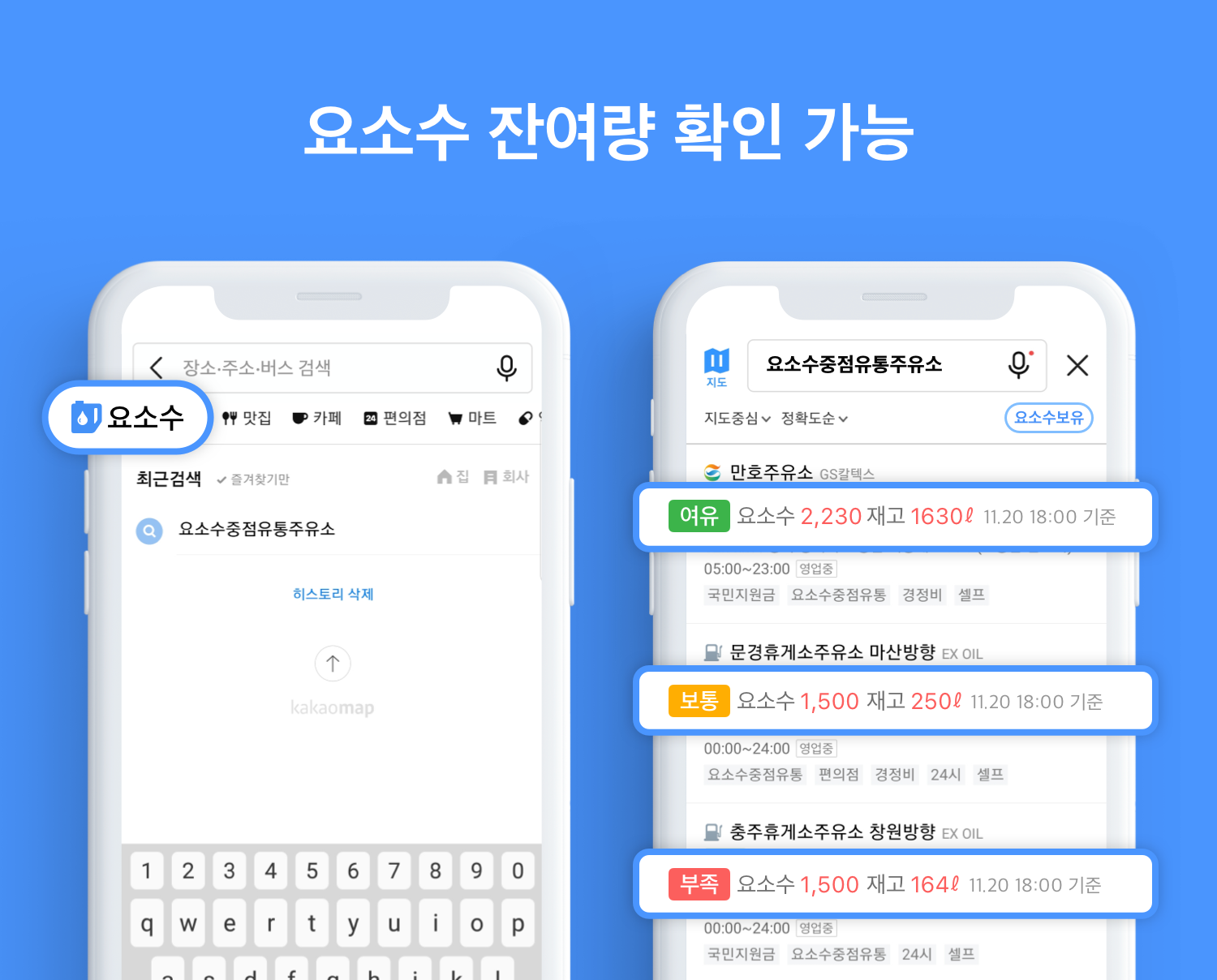저희 카카오맵이 준비한 요소수 관련 기능이