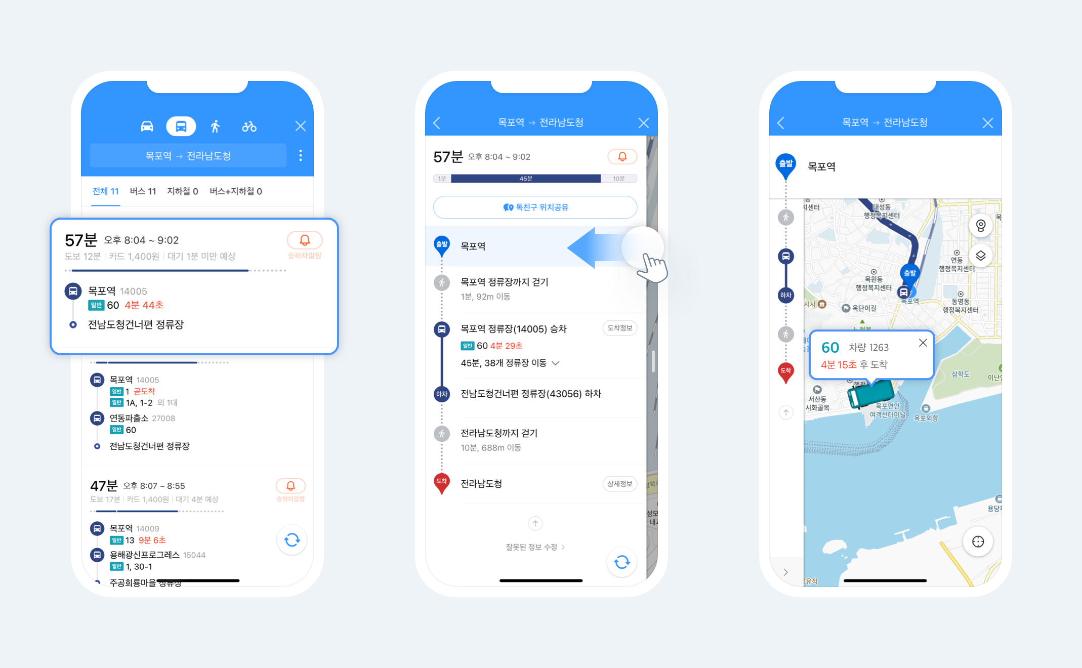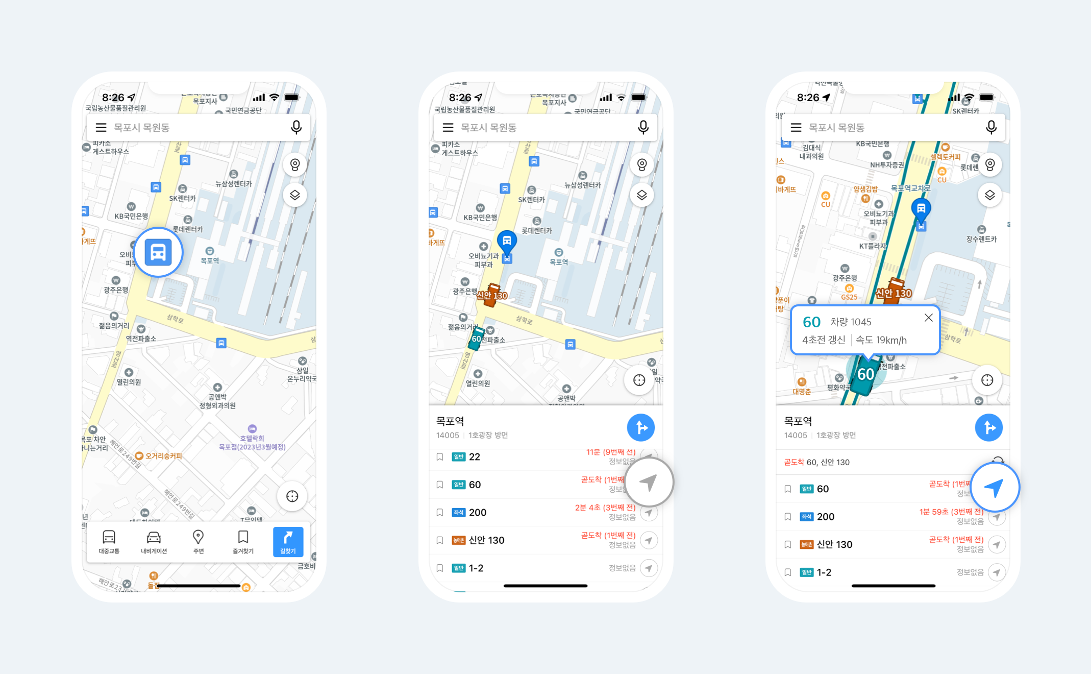 이제 부산/목포/춘천/울산의 실시간 버스 위치도