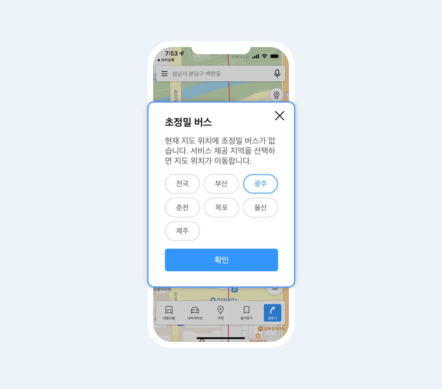 초정밀 버스를 아직 제공하지 않는 지역일 경우,