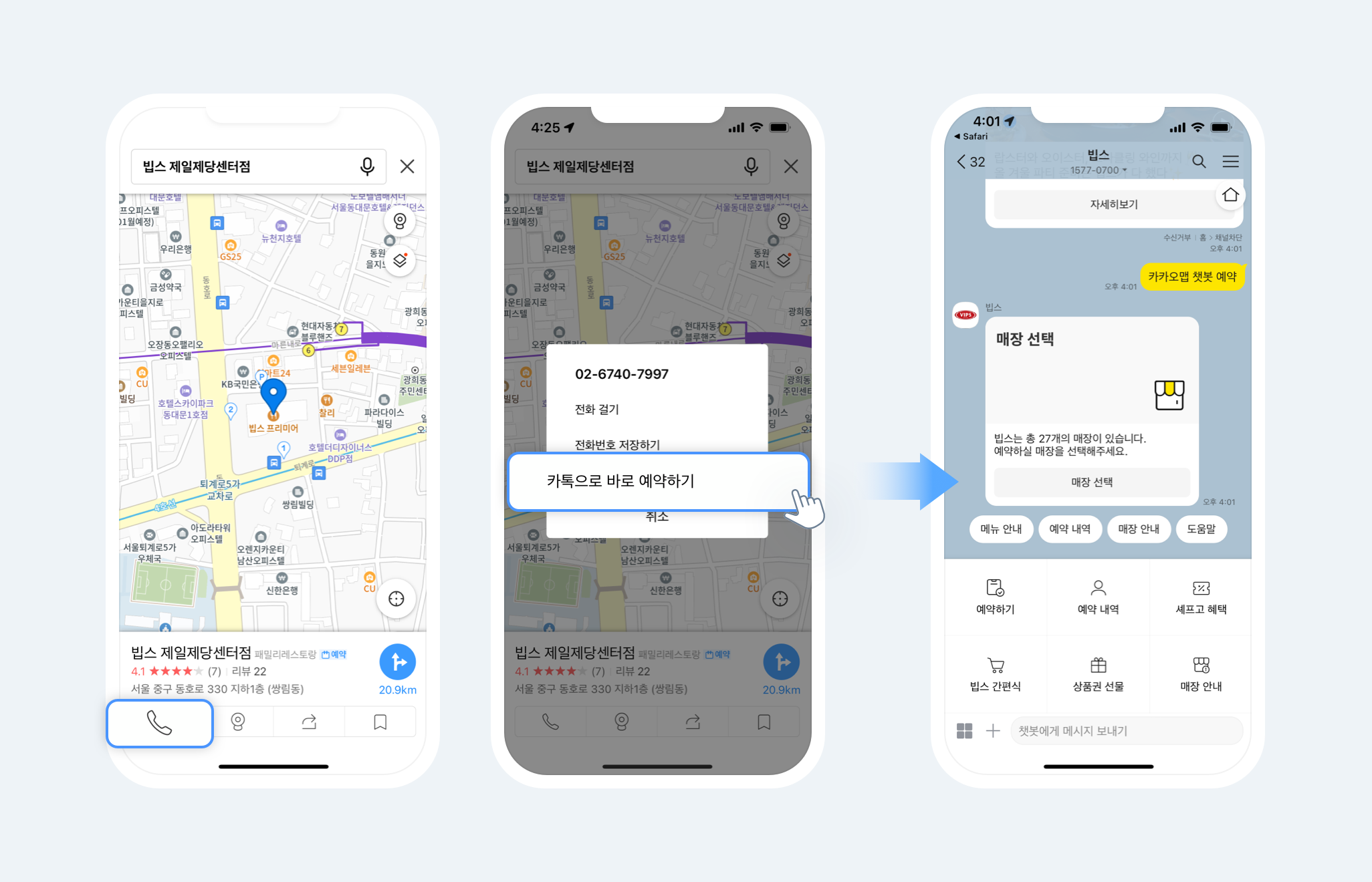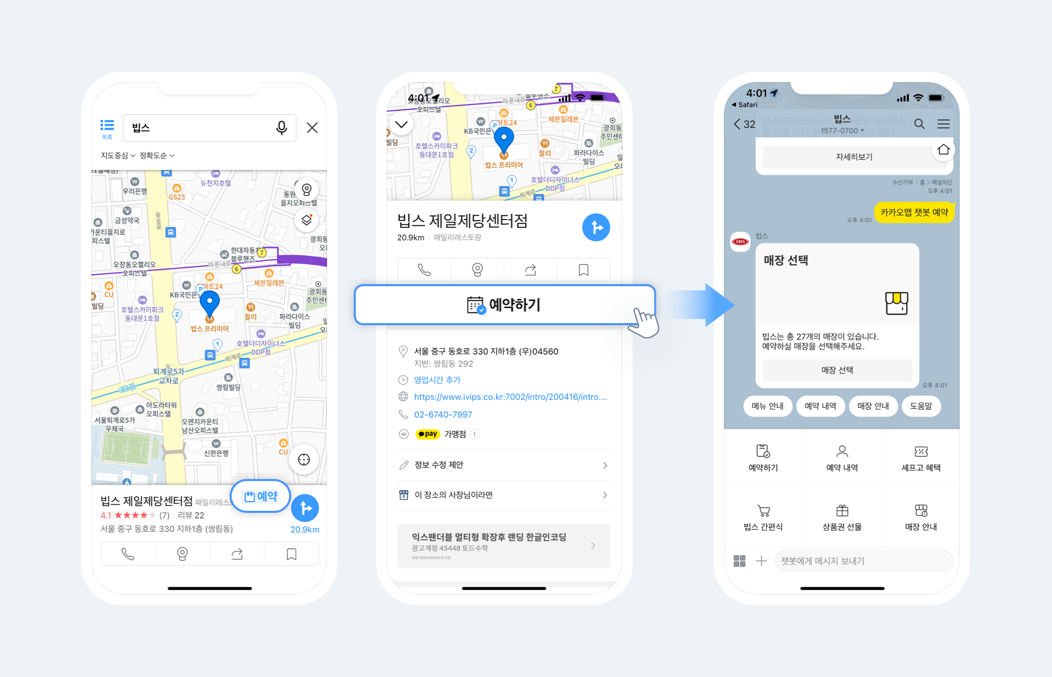 장소 정보를 확인하다 카카오톡으로 예약, 주문할 수 있는 기능이 새롭게 추가되었습니다.