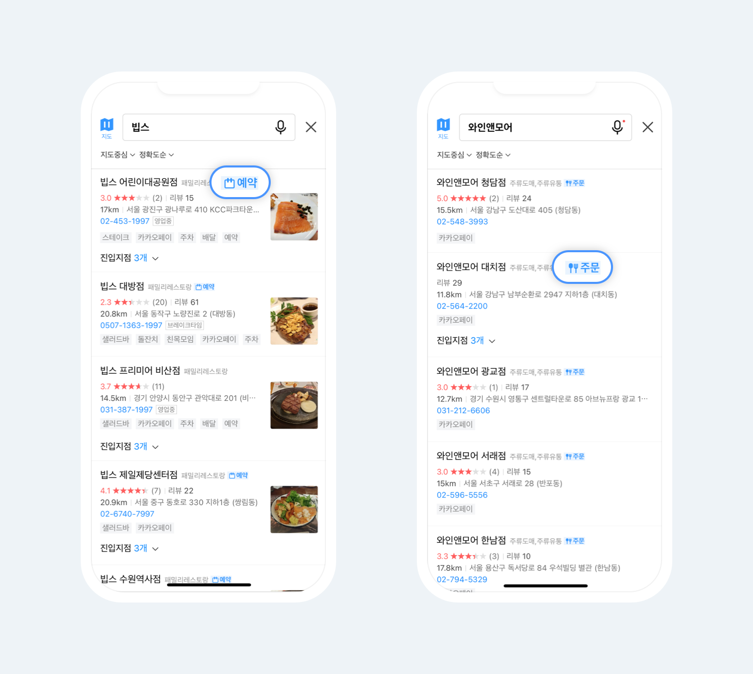 검색 목록에서 예약, 주문 가능한 장소를 확인할 수 있어요!