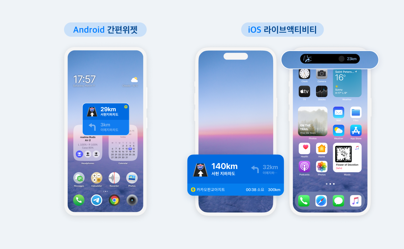 ✔︎ iOS에서는 라이브액티비티를 지원하고, Android에서는 간편위젯을 개선하였어요.