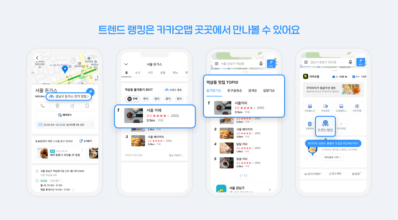 | [카카오맵 APP] 트렌드랭킹 서비스가 업데이트 되었어요! (3) | 2024.01.30 |