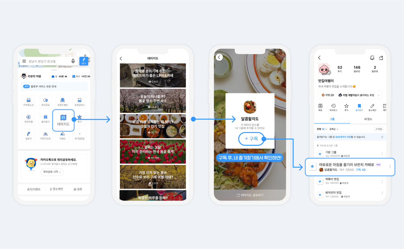 또, 카카오맵에서 만든 테마지도에서 관심 있는 테마도 구독하여 내 그룹에 쏙!