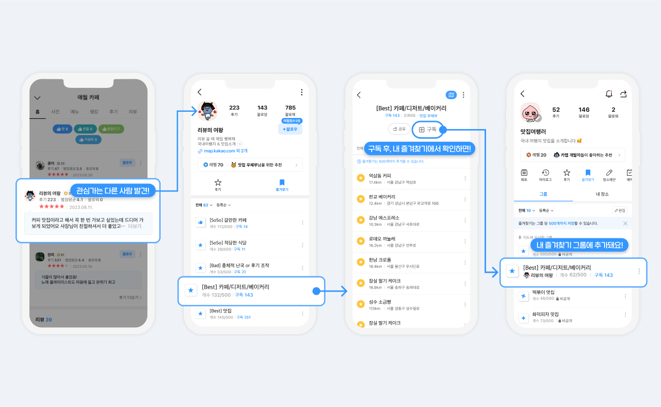 취향별, 지역별, 카테고리별, 상황별 등등 내 입맛대로 즐겨찾기 할 장소들 저장하고 구분하기에