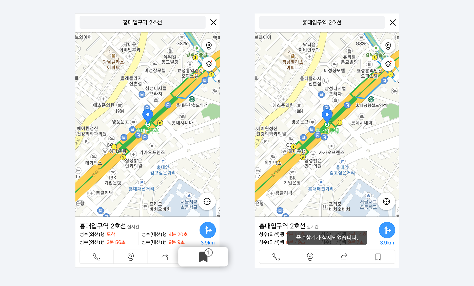 즐겨찾기한 장소는 길찾기에서 유용하게 사용하실 수 있습니다.