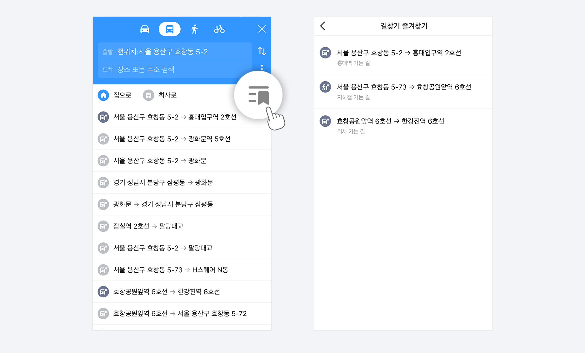 길찾기 결과도 즐겨찾기 해놓으실 수 있습니다.