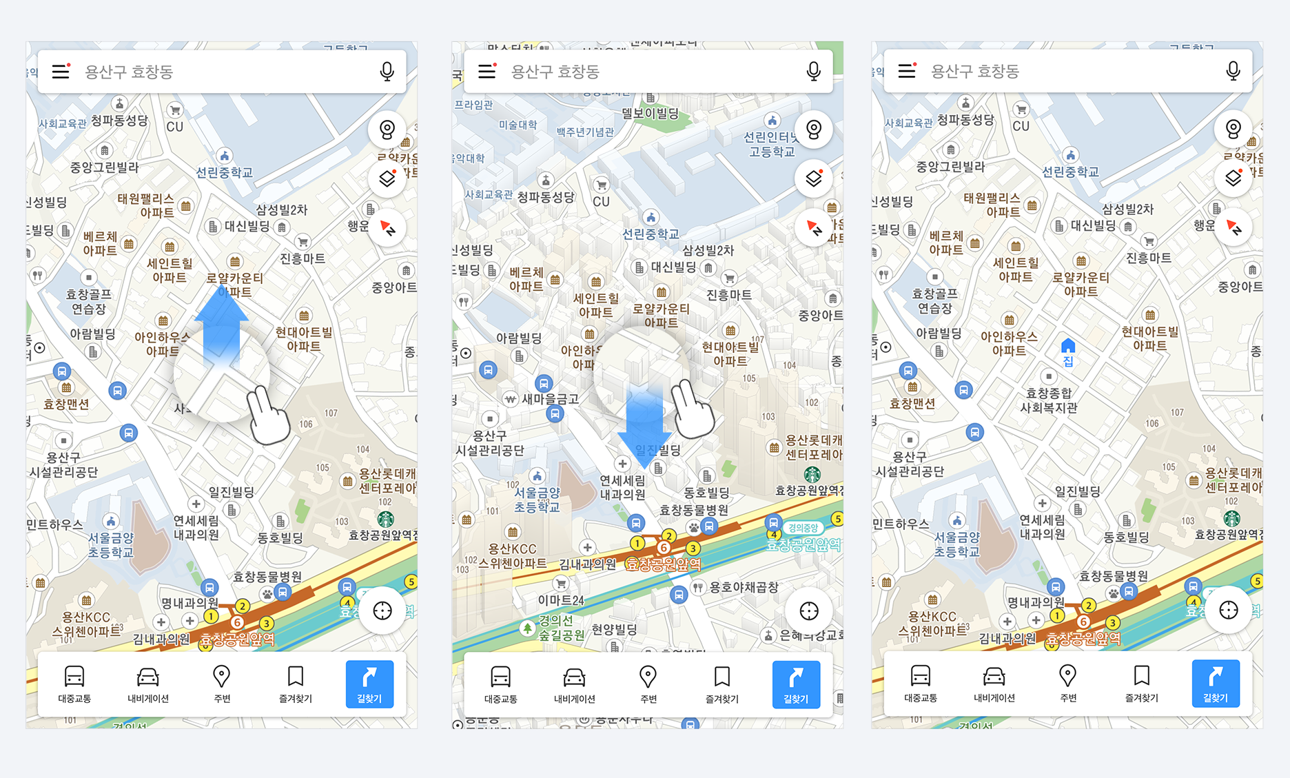 [카카오맵 이용 가이드] 지도판 제스처 이용방법 본문